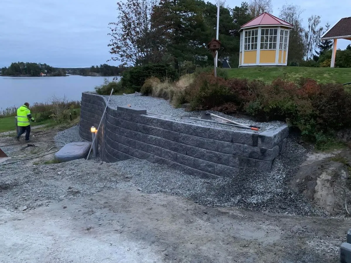Oppføring av støttemurer, gangveier og terrasser ved bruk av naturstein eller betongprodukter.